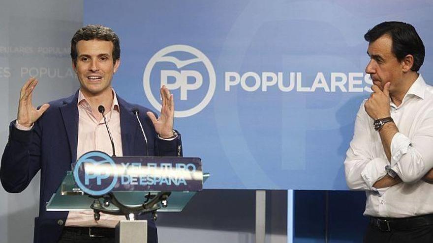 Los vicesecretarios de Organización, Fernando Martínez Maillo, y de Comunicación, Pablo Casado, presentan esta tarde en rueda de prensa la conferencia política, que mañana por la tarde inaugura en Madrid la secretaria general del partido, María Dolores de Cospedal, y que clausurará el sábado a mediodía Mariano Rajoy.