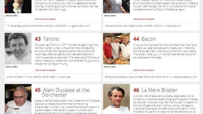 Desde Montecarlo, Le Louis XV de Alain Ducasse ocupa el tercer lugar, seguido por Régis et Jacques Marcon (Francia), Les Prés d'Eugénie de Michel Guérard (Francia), Dal Pescatore (Italia), Schwartzwalderstubbe (Alemania), Per Se del chef Thomas Keller (Estados Unidos), L'Ambroisie (Francia), y Robuchon Au Dôme (Francia), en la décima posición de la lista.