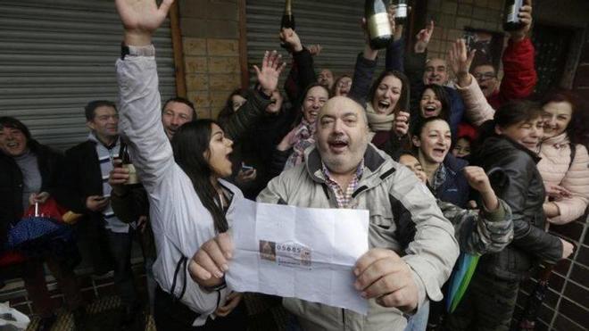 BILBAO. Los vecinos del bilbaíno barrio de Deusto han celebrado por todo lo alto el primer premio de 'El Niño', el 5.685 que se ha vendido íntegramente en la administración de Lotería número 19 de la Villa, en la Avenida Lehendakari Agirre, y ha repartido 100 millones de euros.