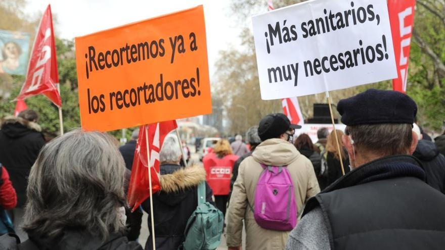 Un total de 115 organizaciones, integradas en el movimiento Salvemos la Atención Primaria(AP), alzaron la voz el domingo en varios puntos de España para defender la Atención Primaria (AP) de una situación de "deterioro y colapso" que se ha arrastrado desde hace 15 años, lo que puede acarrear en la desaparición del primer nivel asistencial. La movilización en Madrid coreó consignas como La Atención Primaria siempre es necesaria, mientras que portaban carteles con mensajes tales como Más sanitarios, muy necesarios, ¡Recortemos ya a los recortadores!Más sanitarios, muy necesarios¡Recortemos ya a los recortadores!.