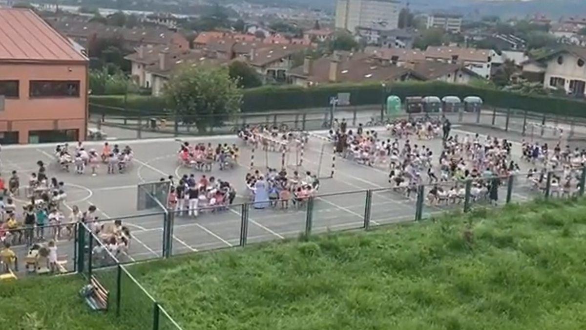 La Asociación de Familias del colegio público Talaia, de Hodarribia, ha denunciado este jueves en las redes sociales que los alumnos han tenido que dar clase en el patio debido a la mala situación en la que se encuentran las instalaciones del centro escolar.