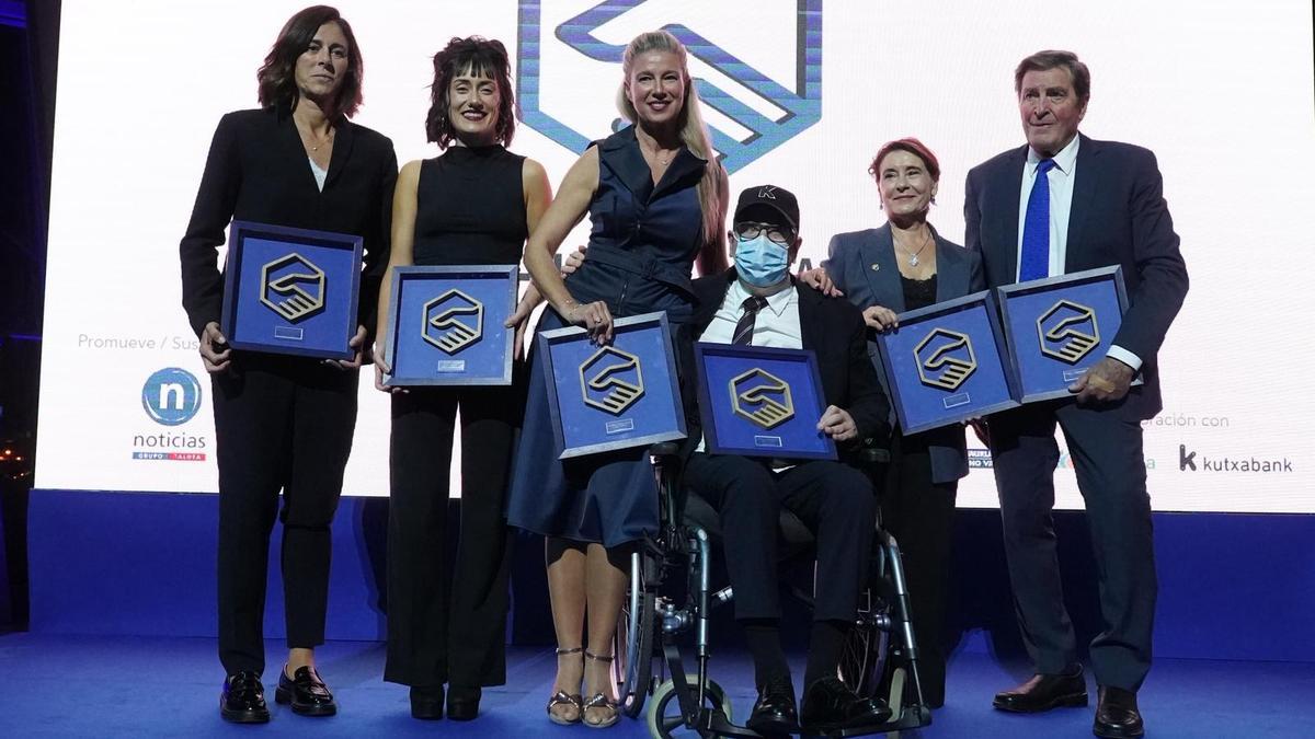 La tercera galardonada en la noche de Hitz Sariak - Premios Palabra fue la alpinista Edurne Pasaban quien recibió la distinción al ‘Esfuerzo’ por parte de Asís Canales, delegado de Iberdrola en el País Vasco y director global de Servicios y Personas del grupo. La tolosarra, que se convirtió en la primera mujer del mundo en tocar los 14 techos más altos de la orografía, dijo que a veces piensa que aquello fue una vida y esto otra. “Ya se han cumplido 15 años. Uno de los mensajes que me transmitió mi padre está muy ligado a la palabra: “Lo que hagas, hazlo bien; lo que empieces, termínalo”, dijo Pasaban.