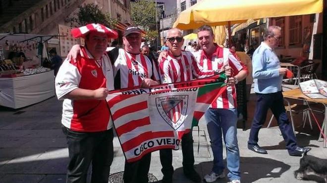 Los rojiblancos partieron desde Bilbao en vuelo chárter en la tarde de ayer. Desde allí se dirigieron en el autobús del club al hotel Pazo Los Escudos, donde fueron recibidos, al igual que en el aeropuerto, por aficionados rojiblancos.