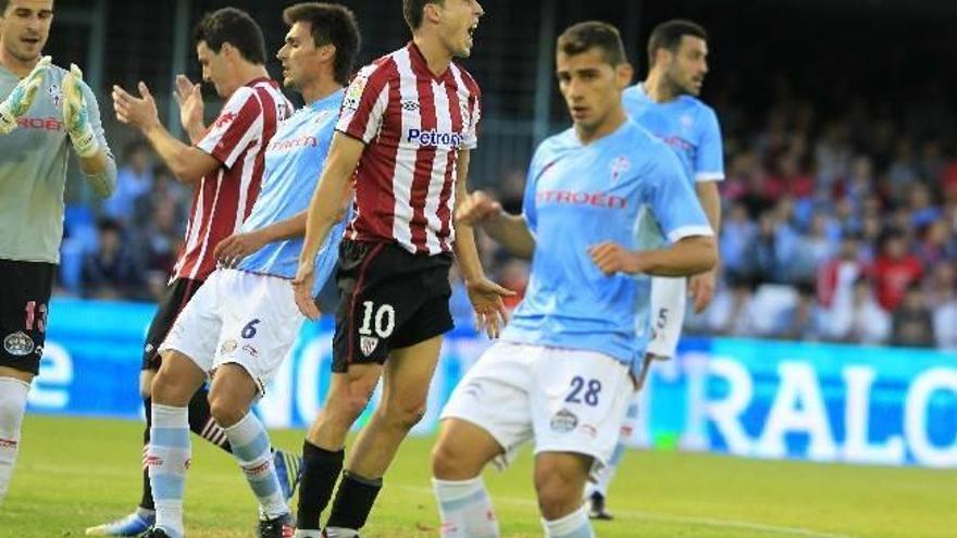 Hacía tiempo que Marcelo Bielsa había optado por afilar más el dibujo retirando a Iturraspe, una maniobra que en principio cundió, pero que a la larga se reveló errónea, pues restó equilibrio. A Muniain le cuesta actuar sin balón y De Marcos perdió libertad al retrasar su posición para paliar este aspecto. En cualquier caso, el problema, la causa del empate, estuvo en el punto de mira de los delanteros. Abel puso cuanto tenía para buscar donde no había y Bermejo pudo cazar una, en un córner. Quizás empujado por el sentimiento de culpa, el Athletic instintivamente se replegó y un mal entendimiento de los centrales permitió a Aspas armar su zurda y cruzarla junto a un poste.