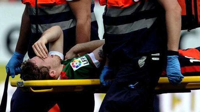 BILBAO. Muniain se lesionó en un lance de juego con el argentino Ever Banega y hubo de abandonar el campo en camilla antes del descanso.