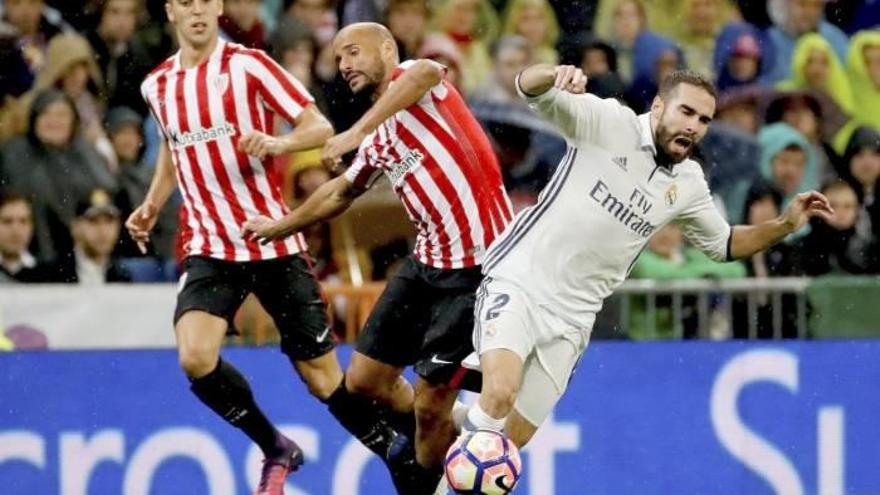 El propio hecho de situarse de entrada en desventaja en el marcador, para más inri justo un minuto después de que Williams gozase de la primera de las tres excelentes oportunidades que tuvo para haber consumado el asalto al Bernabéu, se antojó como la premonición de que el Athletic regresaría a Bilbao con un saco. Sin embargo, transcurridos unos minutos de cierto desconcierto, dio un paso al frente, ajustó líneas y desarrolló una presión alta que poco a poco afloró las vergüenzas del anfitrión. El Madrid está acostumbrado a imponer su pegada, aunque juegue poco es temible en ataque, con la dinamita que concentra arriba compensa sus deficiencias, disimula el acomodamiento de sus figuras. El Athletic acertó a hurgar en las escasas ganas de currelar de los astros merengues, exhibió tesón, constancia y un admirable equilibrio táctico para durante hora y media, todo lo cual le permitió mantenerse metido en el partido, con fundadas aspiraciones de puntuar.