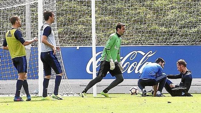donostia - La semana del derbi no ha tardado en convertirse en la del miedo en Zubieta. En solo dos días de entrenamientos a puerta abierta han sido tres los realistas que han dado el susto y han tenido que abandonar el entrenamiento antes de tiempo. Asier Illarramendi y Carlos Vela, en la del martes, y David Zurutuza, ayer. El de Rochefort se resbaló solo en un lance de los partidillos de cinco contra cinco que organizó Eusebio con tan mala suerte que se dobló el tobillo, que, además, lleva generándole problemas desde el pasado verano. Tras una primera revisión en los vestuarios, el club confirmó que había sufrido un esguince que, en principio, no era importante. Pocas horas después el departamento de comunicación txuri-urdin detalló que las molestias que sintió Vela no eran graves y que estará para el derbi. - M. Recalde