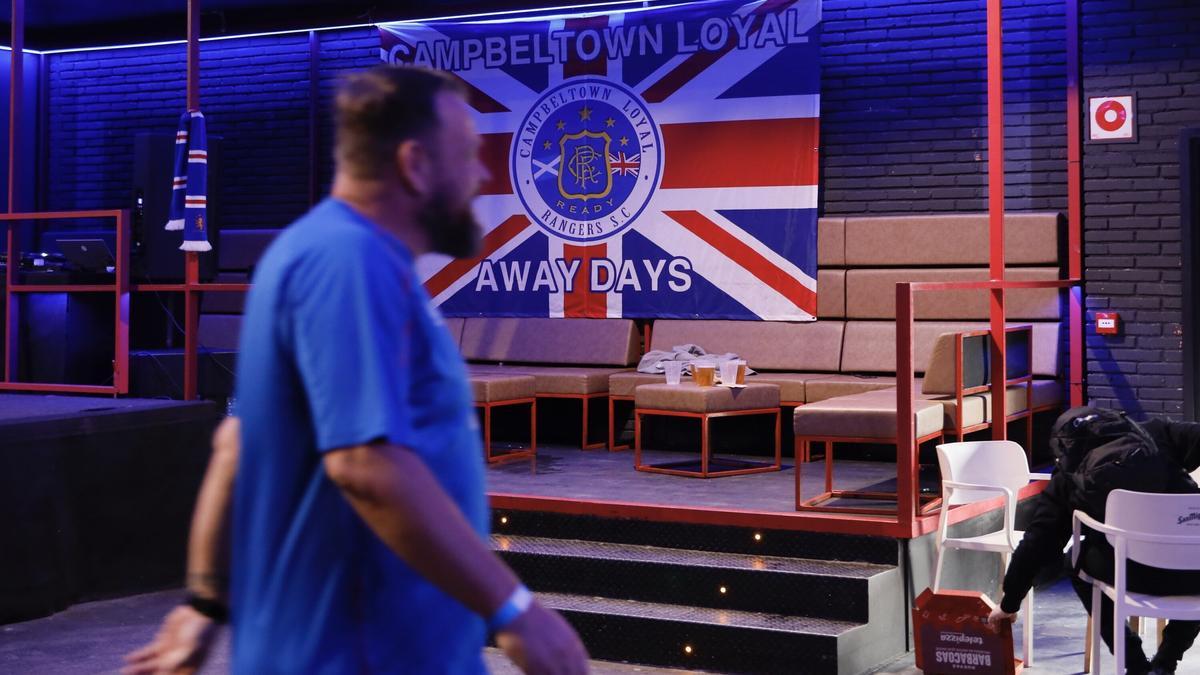 La Sala Sonora ha acogido durante la tarde de este jueves una fiesta organizada para cientos de aficionados del Rangers que han viajado hasta Bilbao sin entrada, y que disfrutarán del encuentro desde esta sala de Erandio. Con más de doce horas de duración, desde las 14.00 hasta las 6.00 horas de la madrugada, los escoceses disfrutarán de una amplia carta de cervezas y de pizzas, con las que reponer fuerzas antes, durante y tras el encuentro.