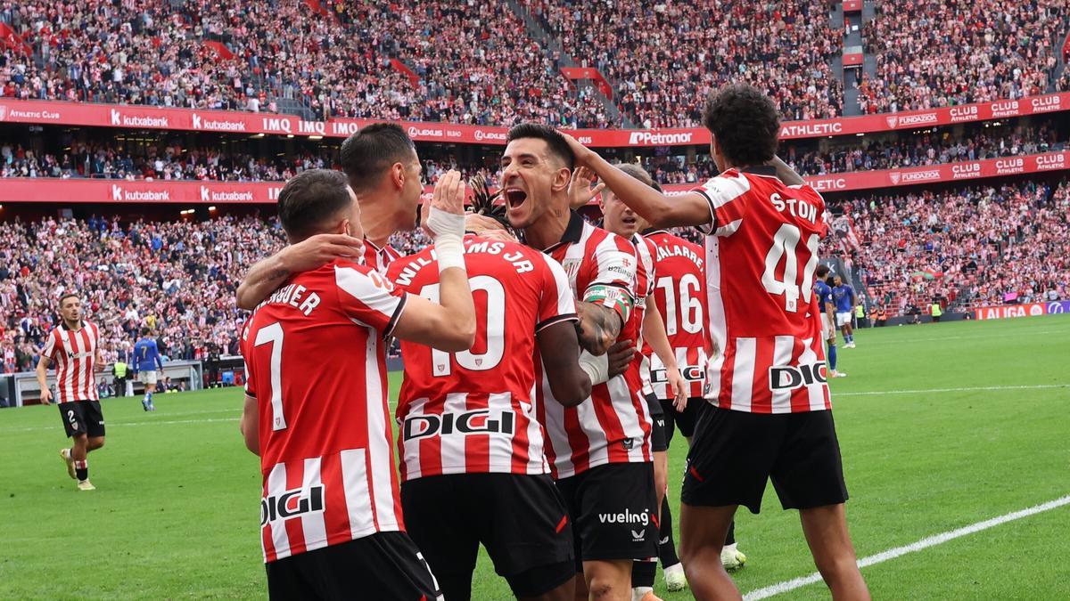 Una vistosa acción individual de Nico Williams alegró la tarde a la afición de San Mamés y aportó al equipo una dosis de calma indispensable en un contexto incierto. La visita del Oviedo resultó balsámica porque, al margen del resultado, permitió a los hombres de Ernesto Valverde explayarse y recuperar algunas de sus señas de identidad, en especial en el trabajo coral. La legitimidad del triunfo fue patente, sin discusión posible; no obstante, conviene puntualizar que una jornada más persistió el déficit de puntería y, ello tuvo un influjo negativo en el balance global del encuentro: que la ventaja mínima persistiese inamovible hasta la conclusión mantuvo al discreto conjunto asturiano con un hilo de vida que en condiciones normales jamás debería haber existido. Quizá tampoco estén las cosas como para pedir holgura o exquisiteces a los rojiblancos. Este domingo salieron con la misión de sumar los tres puntos como fuese y durante amplias fases respondieron al reto.