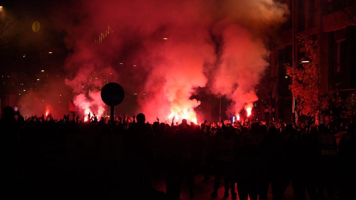 Y se lo pasó en grande. El olor a pólvora, el sonido de los petardos y el color de las bengalas rojas constituyeron la atmósfera festiva perfecta para ir calentando el ambiente. En el buen sentido, claro. Así, acompañados por un fuerte cordón policial, compuesto por miembros de la Ertaintza y colaboradores franceses, los hinchas del PSG se desviaron hasta el Puente de Deusto para enfilar Abandoibarra hasta el Euskalduna.