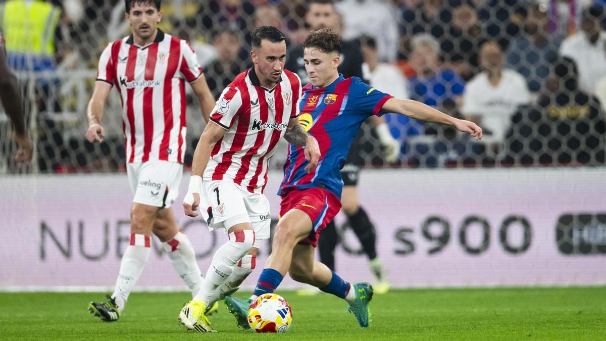 En su estreno en una Supercopa evitó a Lamine Yamal de inicio, pero no por ello pudo con Roony, un secundario del Barça que le empequeñeció, sobre todo en la elaboración del gol del sueco, que le rompió la cintura. Su peor partido de este curso.