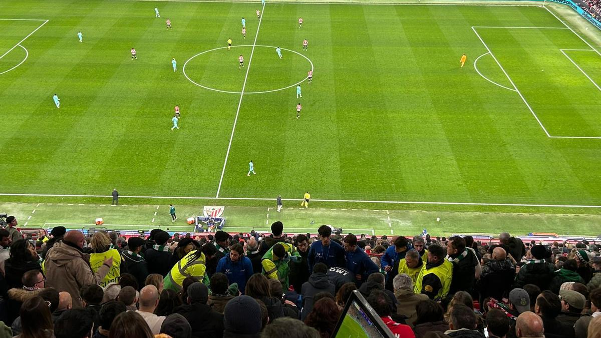 El partido que el Athletic y el Sporting de Portugal disputan en San Mamés ha comenzado con sobresalto en la segunda mitad. Nada más señalar el árbitro el inicio del segundo acto, aficionados del Sporting de Portugal que se sitúan en la parte alta de la Tribuna Principal y que sí han podido acceder al campo por tratarse de VIPs, cuyas entradas deben ceder de manera obligatoria los clubes, han llamado la atención de los servicios médicos que se ubican en distintas zonas del estadio porque una persona, una mujer más concretamente, había sufrido un percance.