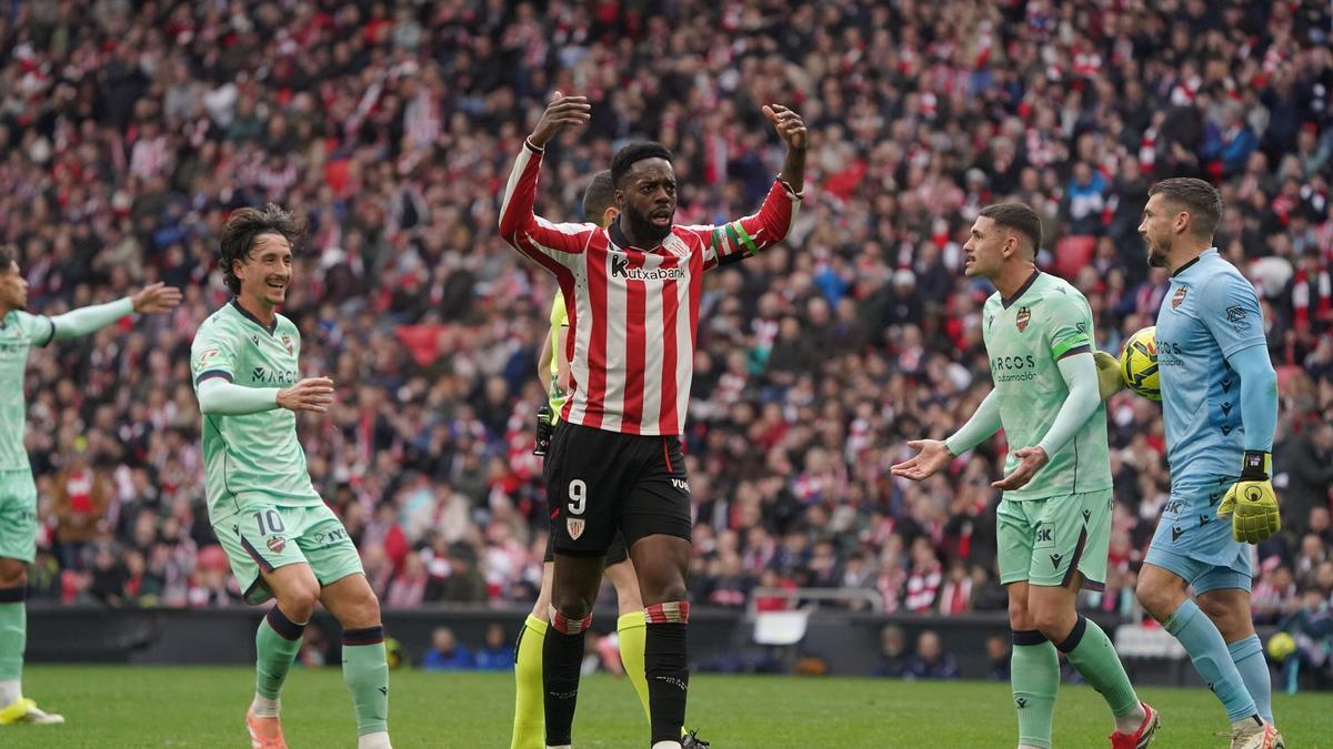 A lo largo de una campaña tan larga para el Athletic como es la actual se dan momentos en que emerge ese matiz resultadista del que reniegan muchos y del que presumen otros muchos. El duelo ante el Levante, penúltimo clasificado y candidato al descenso, quizá invitaba a abrazarse al segundo dogma citado una vez que el conjunto rojiblanco, que encadenaba seis jornadas consecutivas sin ganar en liga, necesitaba los tres puntos como el comer. El colectivo de Ernesto Valverde logró ese objetivo en un encuentro condicionado por la expulsión de Alan Matturro a los 17 minutos y que dejó a su equipo en inferioridad numérica, circunstancia que los leones exprimieron, pero sin evitar apuros ilógicos en el tramo final.