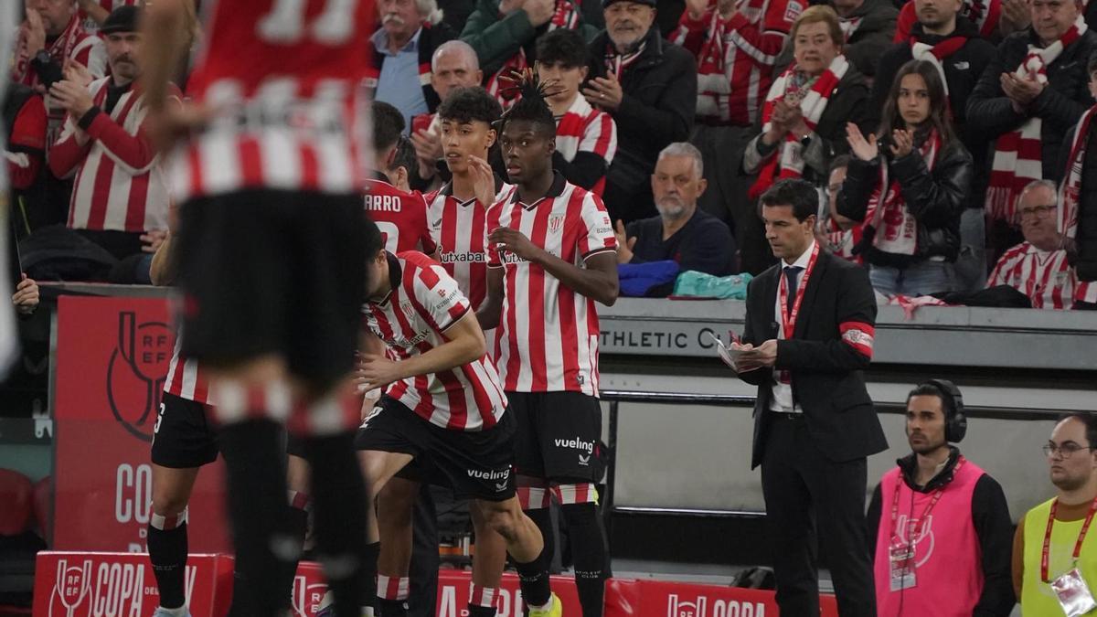 No le ha gustado nada al técnico cómo ha arrancado su equipo el segundo acto y ha apostado por meter sabia nueva al campo. Iñigo Ruiz de Galarreta ha sustituido a Alejandro Rego, Nico Williams a Robert Navarro, Nico Serrano a Iñaki Williams y Selton Sánchez a Unai Gómez.