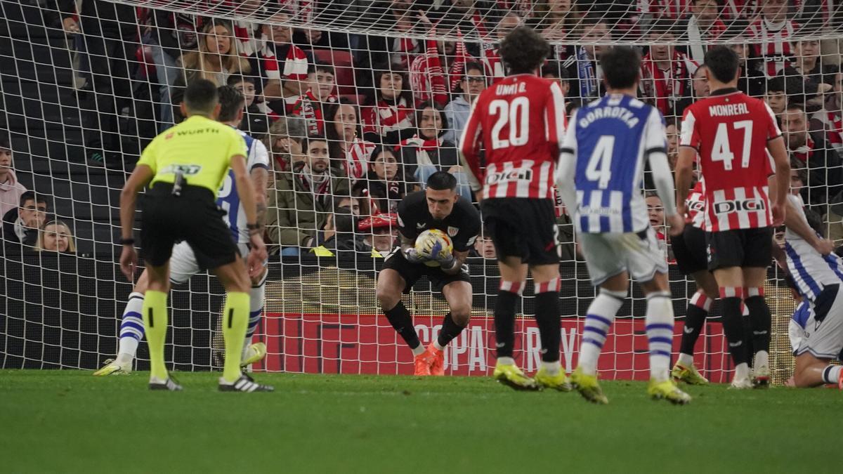 La final de Copa se complica para un Athletic que careció de recursos creíbles para superar a una Real que fue superior y que se topó con la brillante actuación de Alex Padilla, que evitó que el roto fuera mayor con tres intervenciones de auténtico mérito. Mucho tiene que cambiar el fútbol rojiblanco para dar la vuelta a una eliminatoria que se resolverá a tres semanas vista.