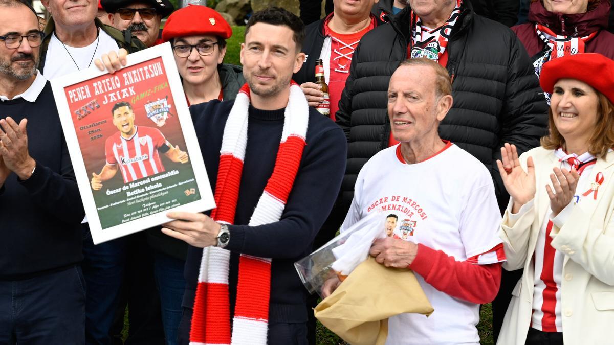 Óscar de Marcos (Laguardia, 14-IV-1989), el segundo futbolista con más partidos en la historia del Athletic, con un total de 573 encuentros a lo largo de 16 temporadas, fue el gran protagonista en la XXVI edición del Hermanamiento de Peñas de Gamiz-Fika que se ha celebrado este sábado.