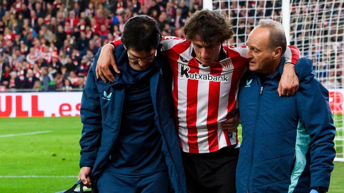 Y es que Unai Gómez regresó a la titularidad frente al Barcelona y tan solo duró 8 minutos en el terreno de juego. El medio bermeotarra se lesionó tras intentar cazar un balón que se marchaba por línea de fondo, en un lance con Marc Bernal; y su rodilla se dobló en un movimiento antinatural. Lo que hizo temer por una lesión importante.