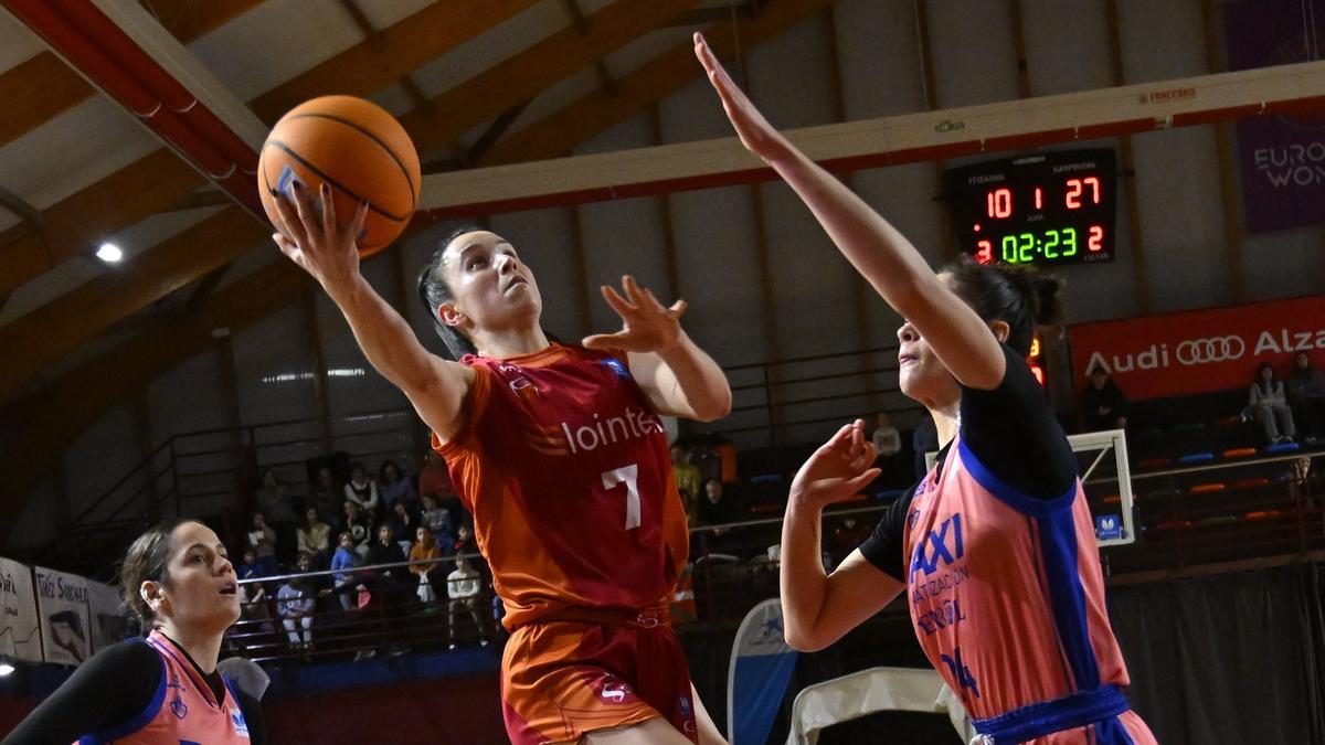 Once puntos seguidos de Joy Adams permitieron a las locales sujetarse a duras penas, pero estaban obligadas a mejorar su rendimiento defensivo ya que su rival jugaba demasiado fácil para armar el brazo desde la larga distancia y con demasiado acierto. Desde un contundente 26-45, las vizcainas subieron líneas y una serie de robos de balón dieron canastas fáciles a las granates hasta un parcial de 12-0 que les metía en el partido.