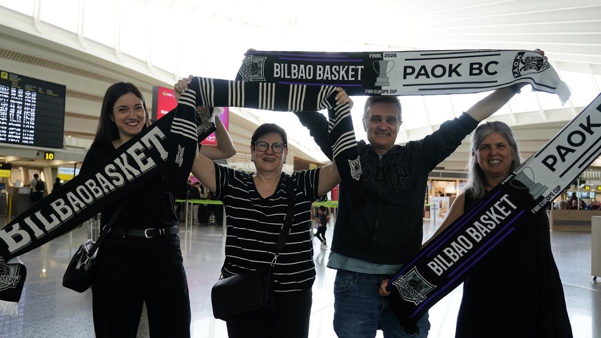 El aeropuerto de Loiu ha sido este martes punto de encuentro de seguidores y medios, muchos de ellos embarcados en el vuelo que ha partido a las 14:00 con destino a Salónica. Bufandas, camisetas negras y ambiente de final europea han acompañado la salida del equipo.