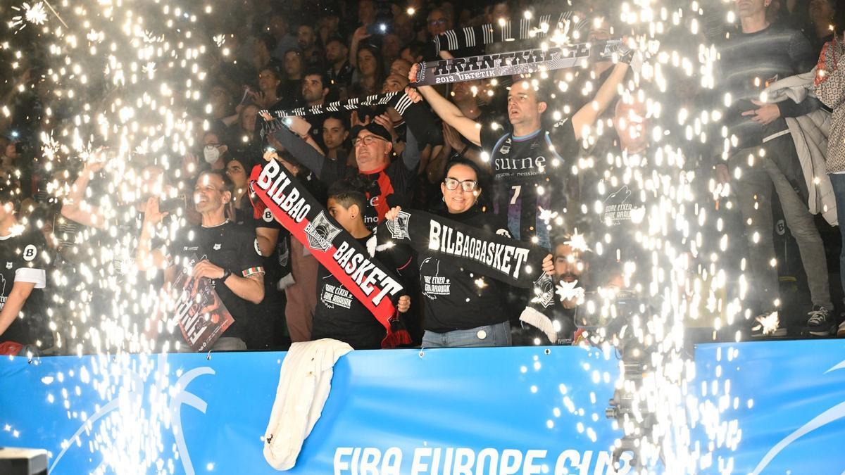 El de este miércoles no fue un partido más. Fue la segunda final europea de la historia del Bilbao Basket. Y eso se pudo notar en los prolegómenos. La afición vizcaina hizo un caluroso recibimiento a los jugadores de Ponsarnau, para después disfrutar en la fan zone que se dispuso en los aledaños de Miribilla. Palomitas gratis, una cancha de 3x3, DJ con música en directo y hasta un fotomatón hicieron las delicias de los que se acercaron. Y para los que tuvieron la suerte de entrar al pabellón, un regalo del club: una camiseta conmemorativa de la final y una petición, levantar la cartulina de su asiento para realizar un mosaico rojinegro con el que se dio la bienvenida a los jugadores antes del salto inicial.