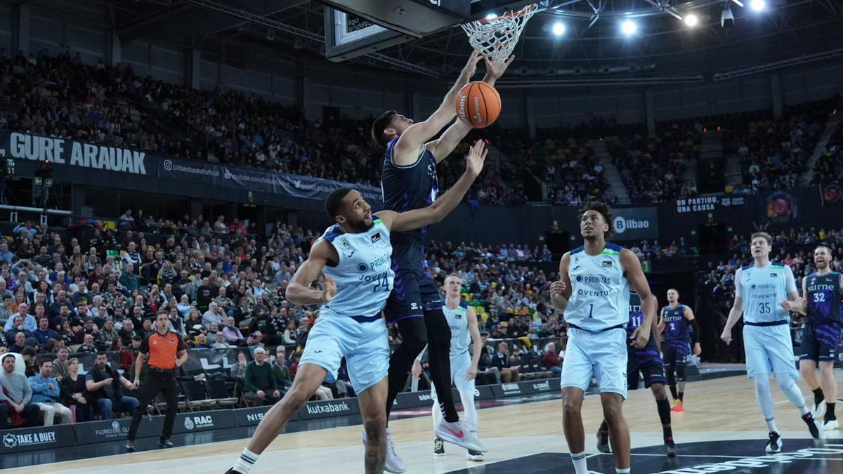El Surne Bilbao no solo está ganando partidos. Y muchos. Lleva cinco seguidos en la Liga Endesa y otros dos en la FIBA Europe Cup. También está brindando un espectáculo baloncestístico de primerísimo nivel, como el que pudieron degustar el pasado sábado las más de nueve mil personas que se dieron cita en las gradas del Bilbao Arena. Los hombres de negro ofrecieron un tremendo nivel defensivo en la trabajadísima victoria ante el Joventut de Ricky Rubio y Ante Tomic, con la guinda de un puñado de grandes mates de los cuales dos se han colado con pleno merecimiento en el Top 10 que elabora todas las semanas la ACB, uno de ellos en el número uno.
