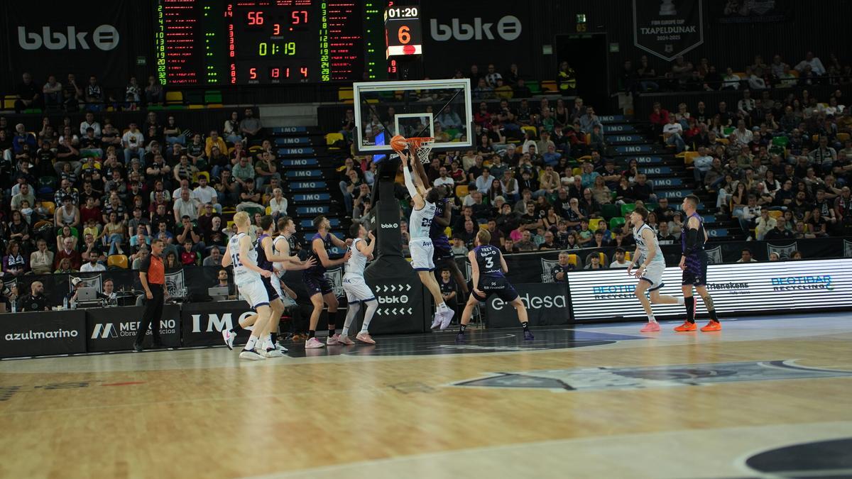 El partido se asemejó a la manera en que se representaban las peleas en las antiguas películas de animación: gente que aparecía y desaparecía del barullo, gestos de disgusto, balones sin dueño y en el caso del Surne Bilbao, bajos porcentajes de tiro que al final penalizaron todos sus intentos de tomar alguna ventaja importante. Entre la necesidad de jugar con rapidez para evitar los contactos y romper la defensa, los hombres de negro solo encontraron el acierto y la regularidad de Frey y de Petrasek. La brega, el no dejarse ir, estuvo cerca de encontrar recompensa ya que Frey y Jaworski tuvieron sendos triples para poner a los suyos por delante en el último minuto, Ayer no tocaba, pero eso no significa que no vaya a tocar en las próximas semanas.