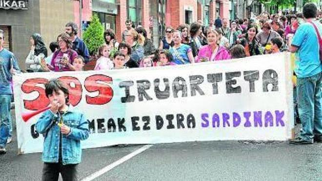Bilbao. Trompetas, silbatos, panderetas y cacerolas. Esta fue la banda sonora que acompañó ayer a los 500 manifestantes, entre madres, padres, alumnos y vecinos, del colegio Iruarteta de Miribilla.