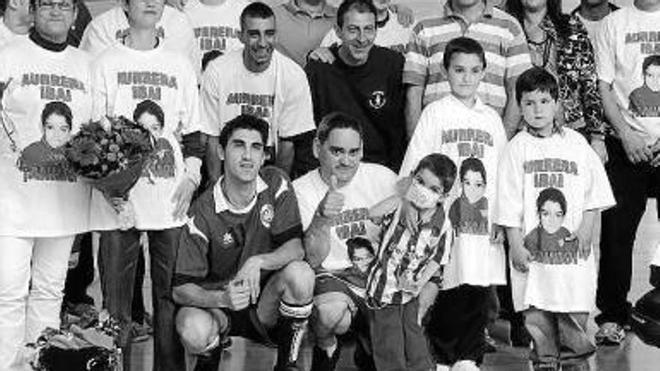 galdakao. El equipo de fútbol-sala Lagun Onak y el Ayuntamiento de Galdakao homenajearon ayer a Ibai Uriarte, en un acto que tuvo lugar en el polideportivo de Urreta, donde el equipo local jugó contra el Eskoria-tza. A la "fiesta de bienvenida" se invitó a los clubes deportivos locales "para arropar al pequeño en su recuperación en casa". Foto: Juan Lazkano