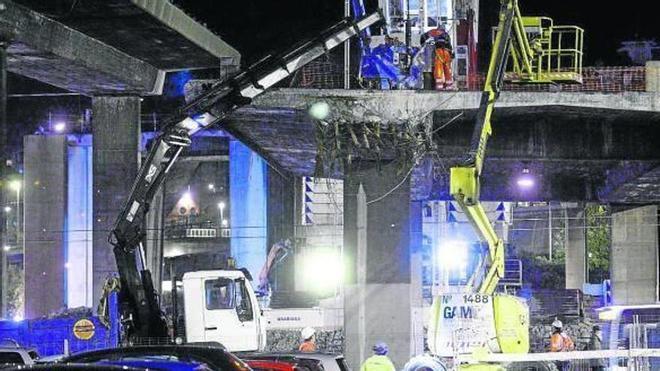 La maniobra será idéntica a la efectuada días atras con otras secciones del viaducto. La gran grúa levantará en el aire los tramos previamente cortados y los depositará en el suelo para luego ser demolidos a ras de calle.