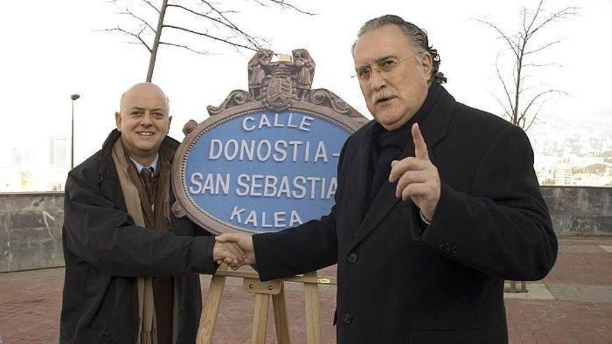 SONABAN los txistus, solemnes, en Miribilla, el barrio que asoma la cabeza y que abraza el nuevo Bilbao escarpado. Era día de fiesta, de inauguración. Iñaki Azkuna, con ese porte british que le caracterizó, comandaba la comitiva. A su lado, Odón Elorza, invitado de honor. Excepcional. Bilbao dedicaba una calle a Donostia. Cosas de Azkuna y del hermanamiento entre ciudades. Un bonito gesto cuando menos. La música envolvía a los dos alcaldes, iconos de ambas ciudades. La A-8, sin conos, acortada, en pleno Bilbao. "Nos dedicó una calle a San Sebastián, hubo txistularis en la inauguración y todo. ¡Pero menuda calle!.