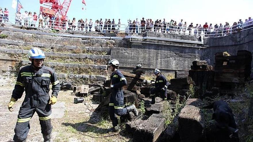 BILBAO. Un simulacro de rescate con perros, protagonizado por bomberos de la Diputación Foral, y otra acción de rescate en la ría, llevada a cabo por los profesionales del Parque de Bilbao, fueron ayer dos de los actos que más público atrajeron ayer en la clausura del Encuentros estatal de rescate de accidentes de tráfico que ha tenido lugar en la capital vizcaina desde el pasado martes. Un total de 350 bomberos de todo el Estado han participado en la prueba que ha reunido a 15 equipos de distintos parques y que ha tenido una representación de tres grupos de los bomberos forales y bilbainos. Las demostraciones de rescates en diferentes escenarios fueron algunas de las actividades que más tirón tuvieron, sorprendiendo a la organización el interés presentado por los asistentes. El buen tiempo de ayer ayudó a clausurar el encuentro de profesionales de seguridad por todo lo alto. Fotos: David de Haro y Borja Guerrero