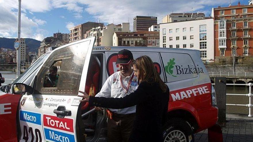 BILBAO. IgnacioCorcuera ‘Livingstone’ bilbotarrak zuzentzen duen Euskadi 4x4taldeak jendaurrean aurkeztu gaur goizean, Bilboko Udalarenlaguntzaz, Dakar Rallyan erabiliko duen ibilgailua, lasterketaamaitzea helburutzat hartuta. Aurreko bi parte-hartzeetan,‘Livingstone’-k zorte okerragoa izan zuen. 2012an, 14 etapetatikzortzi egitea lortu zuen, eta 2013an, lehendabiziko etapan erretiratubehar izan zuen, arazo elektronikoak tarteko.