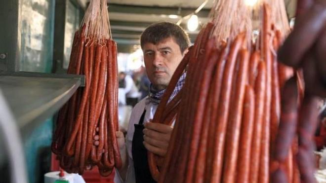 La mayor fiesta del agro vizcaino al aire libre se ha consolidado gracias al anclaje de cada una de la piezas. La feria no sería lo mismo sin el esfuerzo que realizan personas como Aitor Intxaurraga, elaborador de sidra de Lea Artibai; Izarne Sarrionandia, productora de Igorre, o Juan Sacristán, de Gamiz Fika, que ayer colgó con esmero innumerables sartas de chorizos y de txistorra que llevaban elaborando desde hacía días. Ni son todos los que están, ni están todos los que son. Son solo un pequeño ejemplo de lo que se mueve en torno a esta feria. “Estos días son agotadores. No es solo la feria, sino los días previos en los que no paramos organizando las cajas con el producto que vamos a vender”, dijo Juan Sacristán. La jornada también fue muy larga para Aitor Intxaurraga. A las 7.00 de la mañana ya se asomaba por El Arenal bilbaino para descargar las ciento de cajas de sidra Laneko, elaborada con manzana vizcaina y que ayer se volvió a convertir en uno de los productos estrella. “A la gente le gusta mucho y forma una gran combinación con el talo y el chorizo”, afirmaba. Y es que son pocos los que se marchan sin degustar un talo con txistorra, chorizo, morcilla o bacón. Todas las combinaciones son igual de apetecibles. Lo importan es elegir esa txosna en la que tanto el producto como el talo están para chuparse los dedos.