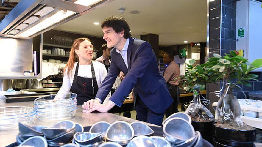 Eneko Atxa tendrá un gran protagonismo en la elaboración de la cena. Lo ha tenido también en la elección de Bilbao como sede del certamen. Fue quien puso en contacto a la organización con Bizkaia y su restaurante londinense acogió ayer la presentación dándole un aire vasco al tradicional brunch (breakfast lunch) británico. El talo crujiente, el rabo de toro con idiazabal, la morcilla o la tempura de merluza con pimientos rojos al basque-style, abrieron el apetito a los asistentes de cara a la cita del próximo año en Bilbao. El txakoli estuvo presente en un cóctel de nueva creación, la Kaipiritxa.- Asier Diez Mon