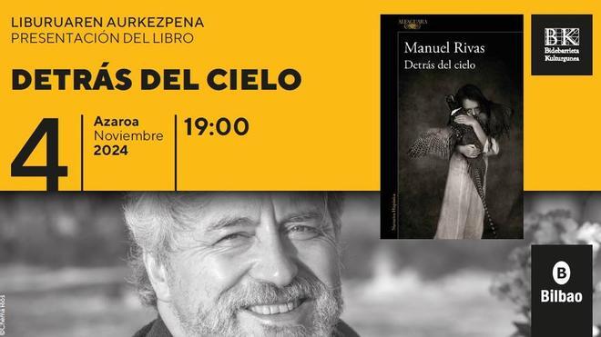 Manuel Rivas autore galiziarra Bilbora etorriko da 'Detrás del cielo' izeneko bere azken eleberria aurkeztera. Ekitaldia astelehenean izango da, azaroaren 4an, Bidebarrieta Kulturguneko liburutegiko ekitaldi aretoan, arratsaldeko 19:00etatik aurrera. Autorearekin batera Leire Bilbao idazlea eta César Coca kazetaria egongo dira.