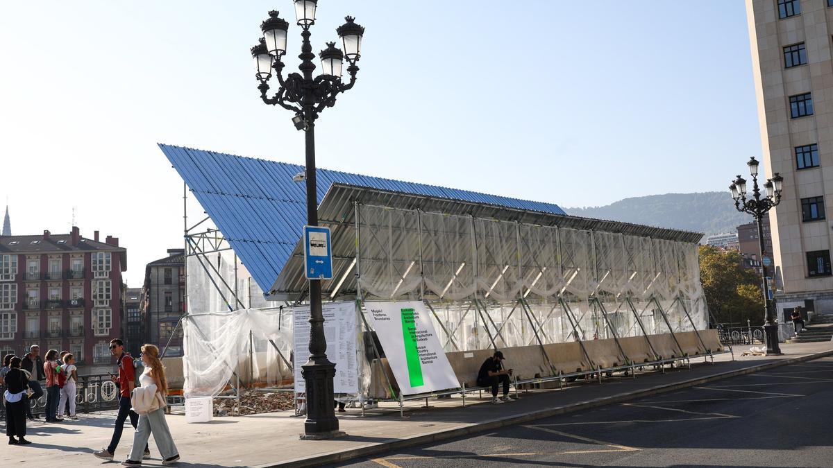 Una llamativa instalación, que simula una casa con materiales reutilizados como escombros o desechos recogidos en el Garbigune, invita a reflexionar sobre el imperativo de rehabilitar las viviendas con la mejora de la apariencia como único propósito. El pabellón, bautizado como Etxenoi, se ha levantado en la Plaza de las Mujeres como uno de los símbolos más visibles de la Bienal Internacional de Arquitectura de Euskadi Mugak cuya quinta edición centra su programación en Bilbao. Tras arrancar la semana pasada, con la ponencia inaugural de Lesley Lokko, ofrecerá multitud de actos a lo largo de las próximas semanas en las que el reconocido arquitecto Massimiliano Fuksas ofrecerá una ponencia o habrá una mesa redonda sobre la remodelación ideada por Oteiza para Zorrotzaurre.
