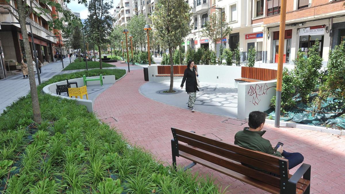 El entorno de la calle María Díaz de Haro ha mejorado su calidad del aire gracias a la intervención urbanística llevada a cabo por el Ayuntamiento de Bilbao para convertirlo en un gran corredor verde entre Doña Casilda y el Parque Ametzola. Con una potente inversión de casi 6 millones de euros, las obras, que comprenden casi un kilómetro de longitud, están favoreciendo la creación de nuevo espacio peatonal, estancial y verde con grandes masas arbóreas y pavimentos drenante en el centro de la ciudad. Así, desde Ekologistak Martxan, reconocen que la actuación ha supuesto una "mejora sustancial de la contaminación", ya que mientras en el año 2023 la media de dióxido de carbono fue de 29 microgramos por metro cúbico mientras que en 2025 ha descendido a 25 microgramos. Pese a ello, la asociación ecologista señala que Bilbao sigue estando entre las diez primeras ciudades que el año pasado superaron el nuevo límite legal de contaminación situado en 20 microgramos de dióxido de carbono.