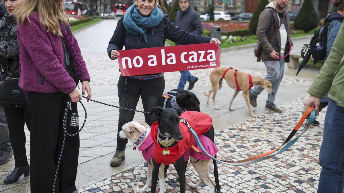 En Bilbao, cerca de un centenar de personas, muchas de ellas acompañadas por perros, se concentran a partir del mediodía en la Plaza Moyúa, desde donde inician una marcha que concluye en la plaza del Arriaga. Durante el recorrido, los manifestantes expresan su rechazo a la caza y denuncian lo que consideran una explotación sistemática de los animales, poniendo el foco especialmente en el uso de perros —y en particular de galgos— en esta práctica.