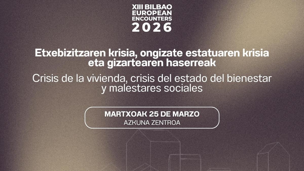 Bilbao European Encounters topaguneak XIII. edizioa beteko du aurten, eta, foro horretan, etxebizitzaren inguruko kezkaren inguruan adituak diren pertsonen arteko lehenengo elkarrizketa-mahai bat eta hitzaldi nagusi bat planteatzen dira, ikuspegi akademikotik, eta, horren osagarri, bigarren elkarrizketa-mahai bat proposatzen da, gizarte-eragileak protagonista dituena eta etorkizunerako aukerak aztertuko dituena.