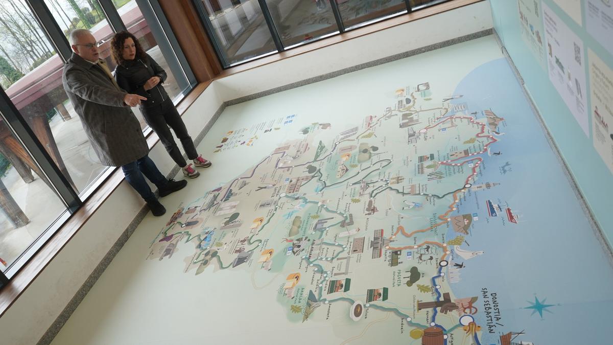 Así, a través de un vinilo colocado en el suelo del vestíbulo de la estación superior del funicular que representa un mapa de grandes dimensiones de Euskadi y de varios paneles de cartelería con códigos QR, se recogen las ocho rutas diseñadas por el Departamento de Turismo, Comercio y Consumo para facilitar a los turistas recorridos por los tres territorios vascos.