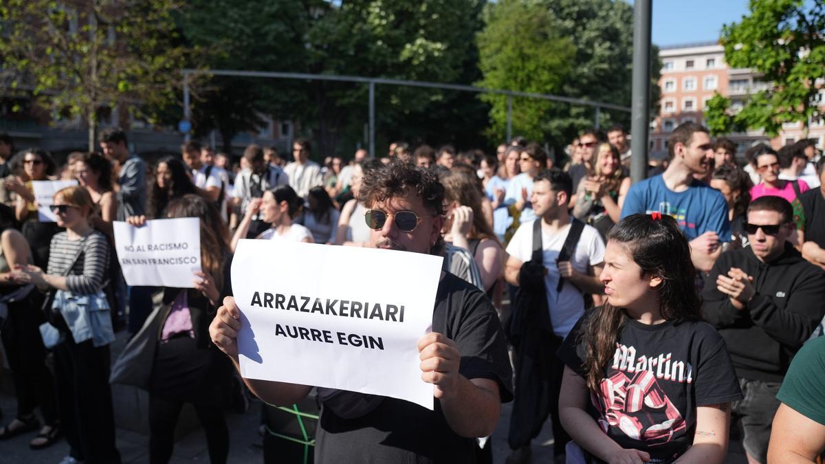 Alrededor de 200 personas se han concentrado este lunes en el barrio bilbaíno de San Francisco para protestar contra lo que consideran "la campaña racista impulsada por el PP y Vox". La movilización, convocada por el sindicato de vivienda Azet y Gazte Koordinadora Sozialista (GKS), ha recibido el respaldo de asociaciones vecinales de Bilbao la Vieja.