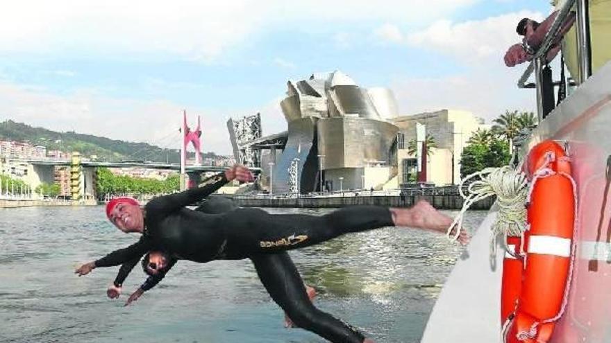 Mientras tanto, la limpieza de las aguas y la presencia de unas orillas urbanizadas y plagadas de paseos y jardines ya están suponiendo una revitalización real del cauce. En el último año, el Ayuntamiento ha habilitado varios pantalanes para facilitar el acceso a las piraguas y pedalos que han sido habituales los dos últimos años. A finales de este mes, el primer triatlhon de Bilbao tendrá su prueba de natación en la ría y, en julio, el Club Deportivo organizará su tradicional travesía de nado entre el Ayuntamiento y Abandoibarra. Personas nadando en la ría, prueba irrefutable de su limpieza y su futuro.