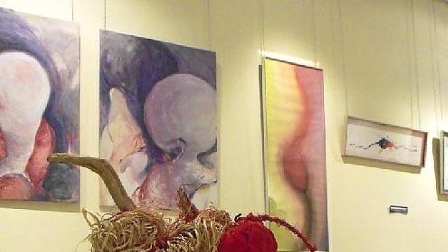 La exposición abre las puertas de la sala con una flor de grandes dimensiones, obra de Txus Gutiérrez-Solana. Con su Jardín Secreto, ha querido buscar "la fuerza de lo sensible" en una sociedad con mucho gris y que a pesar de ello, sigue pariendo belleza. Una flor, esta "interna" es el tema de uno de los cuadros de Lourdes de la Cal, que ha aprovechado este seminario para estudiar "las energías de cada color y las que se forman al juntarlos".