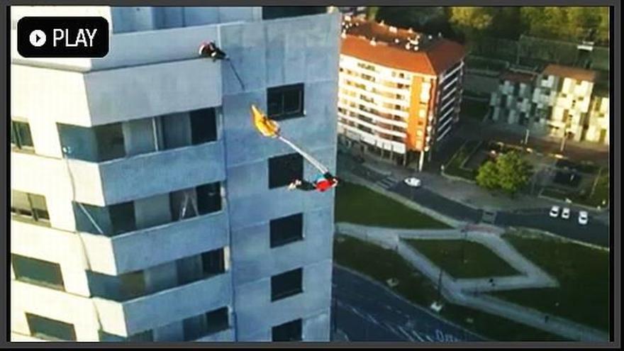 BILBAO. Una persona no identificada se lanzó ayer en paracaídas desde los edificios que se están construyendo en Garellano, en Bilbao. Pese a que está prohibido realizar hazañas como esta desde los edificios de la ciudad, la aventura salió bien y nadie resulto herido.