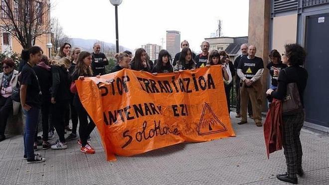 La concentración, que ha durado media hora, ha estado encabezada por una pancarta con el lema en euskera "No a las antenas de Solokoetxe. Stop radiaciones", un emblema que ha sido coreado por los presentes, junto a otras consignas como "Ayuntamiento, Educación, principio de precaución".
