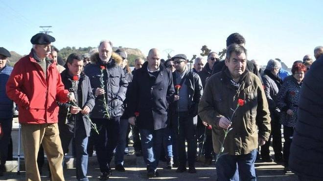 El alcalde de Sartaguda, Paolo Albanese, ha ejercido de anfitrión en el homenaje que ha reunido en torno a familiares de personas fusiladas a representantes de los ayuntamientos de Gernika, Durango y Otxandiano, así como cargos públicos de diferentes formaciones políticas, además de miembros de asociaciones memorialistas como "Pueblo de las viudas".