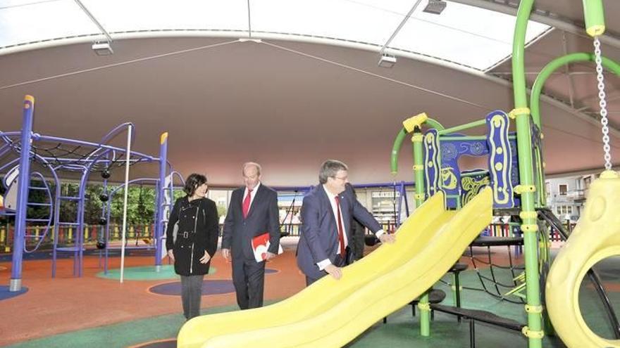 Para la cubierta de los juegos infantiles, el Consistorio ha colocado una moderna estructura diáfana de acero a base de pilares redondos metálicos, unidos por una viga de sección circular. La estructura sólo presenta pilares en su borde exterior, por lo que deja espacio libre para el juego y el movimiento sin obstáculos.