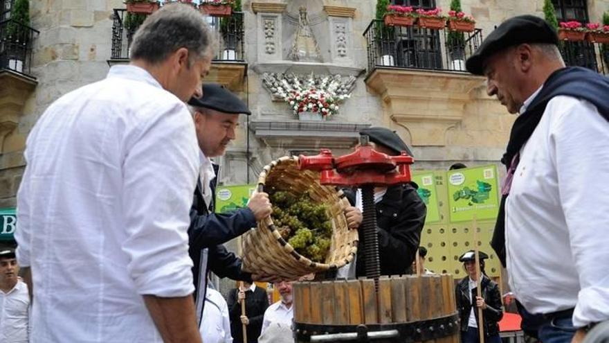 Tras retomar la kalejira, se llegó al edificio de La Bolsa, donde ya estaba todo preparado para comenzar a extraer el primer mosto de Bizkaia. Tras introducir en el barril de la prensa las uvas de las seis comarcas vizcainas -Enkarterri y Ezkerraldea, Uribe, Urdaibai, Lea-Artibai, Nerbioi y Durangaldea- se comenzó a exprimir para extraer el mosto. Lo hicieron, como es habitual, responsables de diferentes bodegas. El jugo comenzó a salir y a llenar la jarra. ¡Ya estaba todo listo!