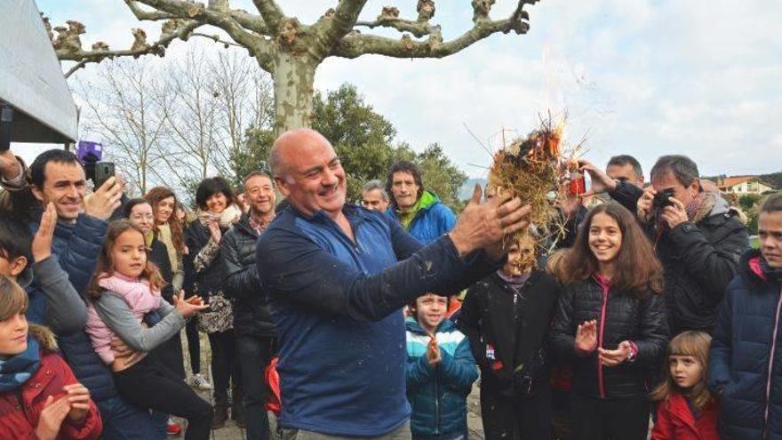 Así, Líbano se recluyó en la cabaña y solicitó la ayuda de los participantes para crear un espacio oscuro donde poder prender una pequeña chispa. “Se necesita oscuridad”, afirmó. Sobre una concha llena de hoja de cardo desmigada junto a restos de paja, a través de la fricción de las lascas de sílex de Barrika y de mineral con óxido de hierro, además del impulso de su propio soplido, consiguió crear una flamante llama ante el aplauso del público. “El fuego era esencial para la vida”, subrayó Líbano.