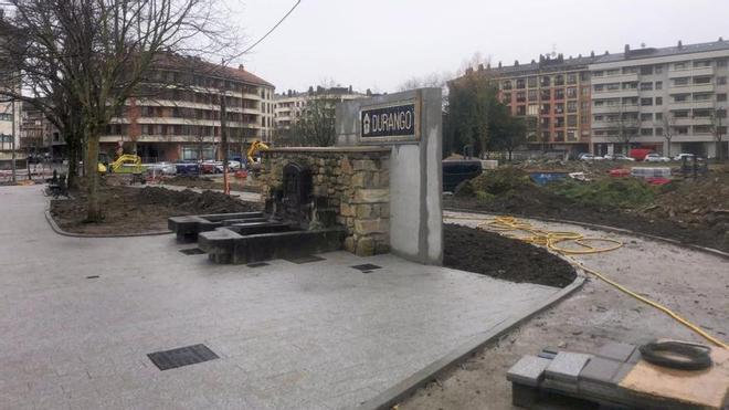 En el marco del proyecto, el Ayuntamiento acaba de recolocar la antigua placa de Durango que se retiró del edificio derribado de la calle Ollería para instalarla junto a la fuente anexa a la antigua fábrica durangarra. La histórica placa de azulejos se ha instalado junto a la fuente de San Fausto, manteniéndola en el proyecto urbanístico del nuevo parking con el objetivo fundamental de proteger el patrimonio de la localidad.